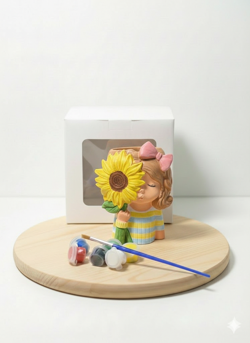 Sessiz Çiçek Kız + 6 Renk Boya + 2 Fırça